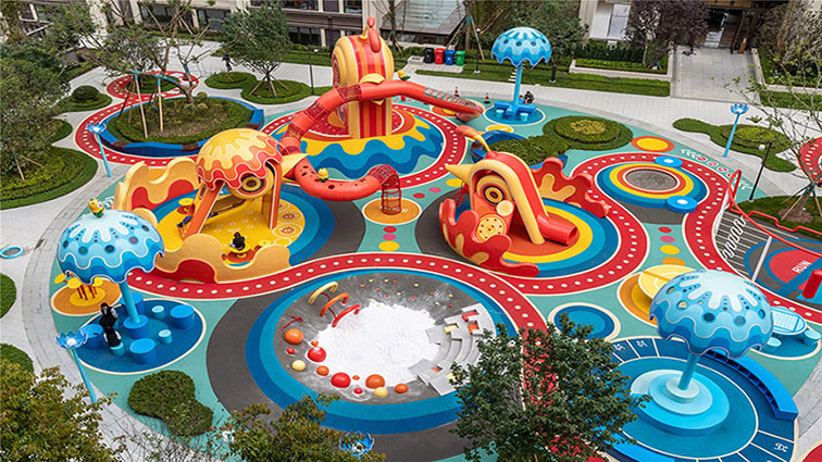 高飽和度的撞色設(shè)計(jì)極具視覺張力,模塊化功能區(qū)覆蓋全齡段兒童需求,全圓角環(huán)保材質(zhì)與防滑地面兼顧趣味與安全。作為社區(qū)核心活力節(jié)點(diǎn),它既能讓孩子在探索中鍛煉體能與想象力,更能憑借高顏值造型成為區(qū)域網(wǎng)紅打卡點(diǎn),顯著提升社區(qū)的親子友好度與居住幸福感。