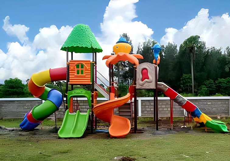 設(shè)計亮點(diǎn):采用高飽和度的彩虹撞色,搭配仿真樹頂、木屋與章魚形象,視覺活潑且充滿童話感,全圓角環(huán)保材質(zhì)與防滑階梯兼顧耐用性與安全性,適配 3-12 歲兒童。