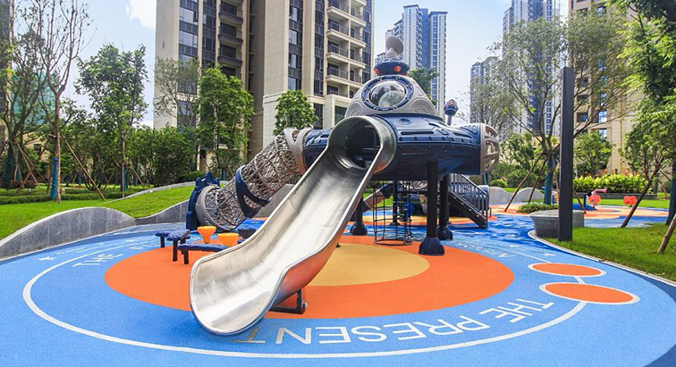 全圓角與防滑設(shè)計(jì)適配 3-12 歲兒童,搭配藍(lán)橙撞色的安全地墊,既保障玩耍安全,又強(qiáng)化了海洋氛圍。作為社區(qū)活力核心,它既能讓孩子化身小潛水員沉浸式探險(xiǎn)、鍛煉體能,也能憑借獨(dú)特造型成為親子打卡點(diǎn),提升社區(qū)的親子友好度與空間顏值。