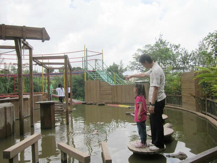 游客可親子組隊(duì)或結(jié)伴挑戰(zhàn),在晃蕩的浮臺(tái)與木樁間鍛煉平衡感,在繩網(wǎng)障礙中考驗(yàn)協(xié)作力,全程兼具趣味性與拓展性,兒童可在家長(zhǎng)陪同下逐步闖關(guān),是親子陪伴、團(tuán)建拓展的歡樂(lè)場(chǎng)。設(shè)備采用防腐原木與防滑浮材,全模塊緩沖減震,搭配淺水域設(shè)計(jì),安全系數(shù)高,適配全年齡段人群,適合安置在生態(tài)農(nóng)莊、郊野營(yíng)地、親子樂(lè)園等場(chǎng)景,既能作為親子互動(dòng)的核心項(xiàng)目,也能憑借鄉(xiāng)野間的獨(dú)特體驗(yàn)成為網(wǎng)紅打卡點(diǎn),帶動(dòng)客流與話題傳播。