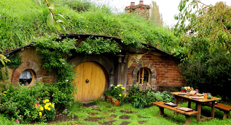 這是一款還原《霍比特人》電影場景的主題景觀小屋,以紅磚墻面、原木圓門和仿真草皮屋頂為核心造型,搭配爬藤植物與繽紛花境,整體如一座藏于綠野的童話居所,充滿治愈感與沉浸感。